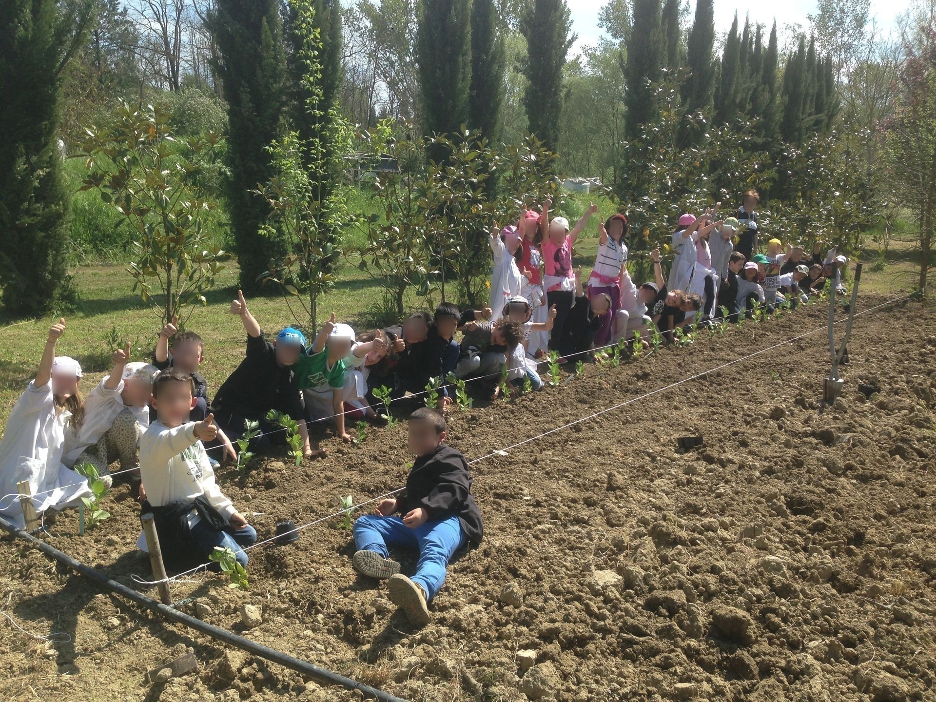 Tramite la collaborazione con le maestre delle scuole primarie, i bambini hanno la possibilità di imparare divertendosi, mettere le mani nella terra per seminare, piantare, tenere i rastrelli in mano per raccogliere le olive.